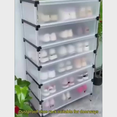Multi Layer Dustproof Shoe Rack Organizer With Cover Foldable Shoe Storage Cabinet